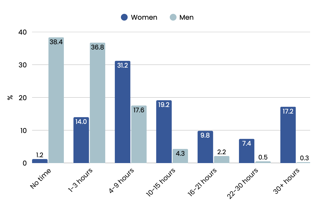 In addition, participants were asked how much time their partners spent on household chores each week. Figure 3 shows the distribution of these responses by gender.