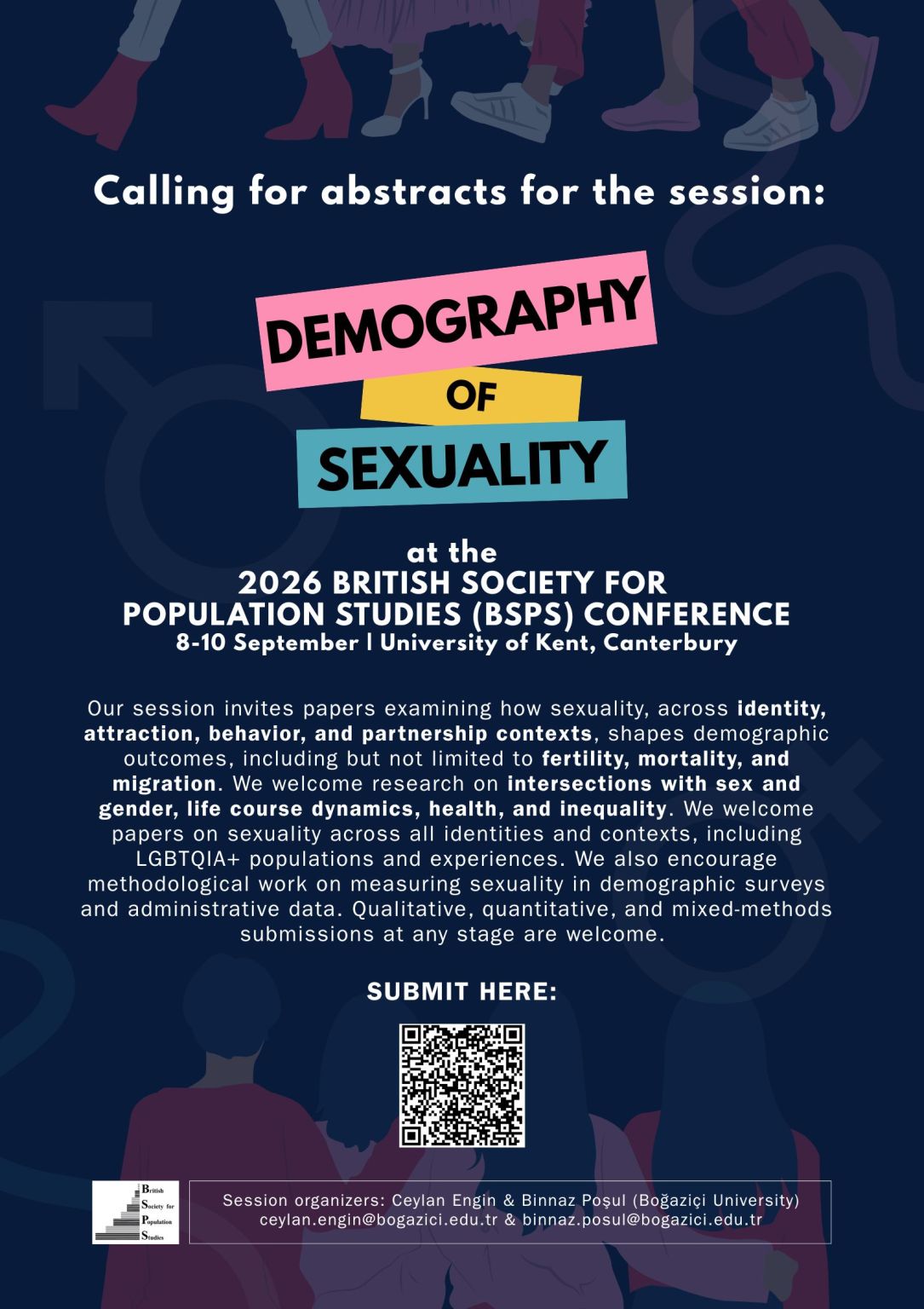We are excited to announce that our P.I. Ceylan Engin and SDL team member Binnaz Poşul are organizing a session on the Demography of Sexuality at this year’s BSPS 2026 Conference!